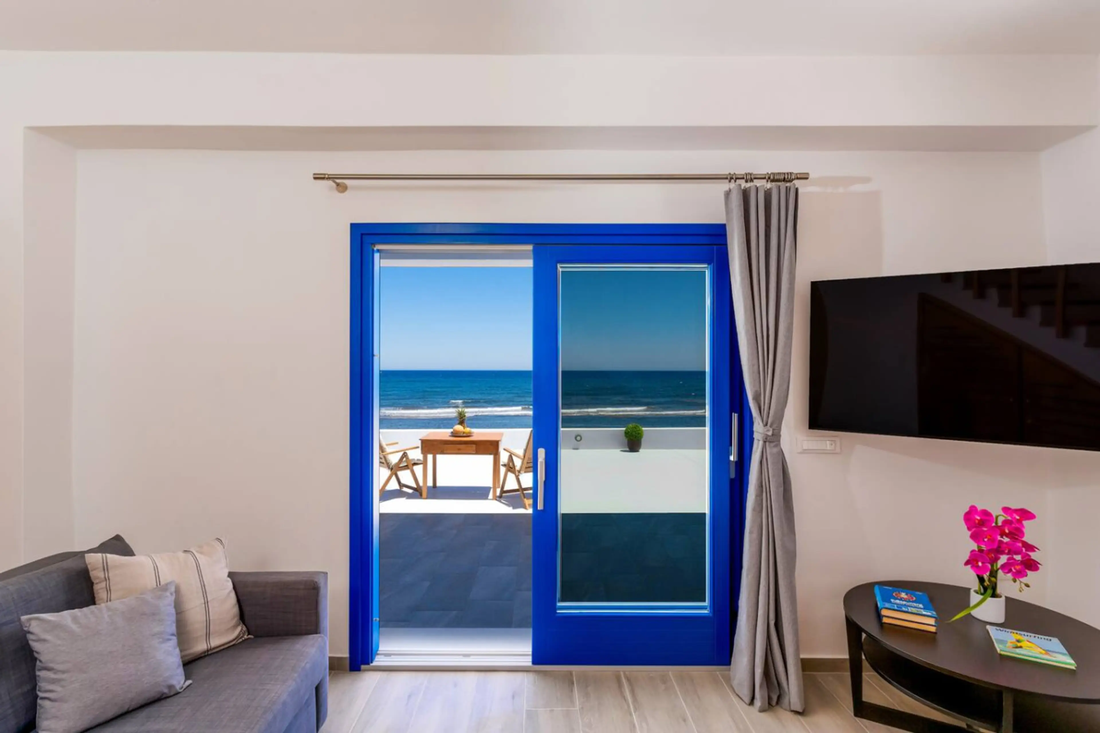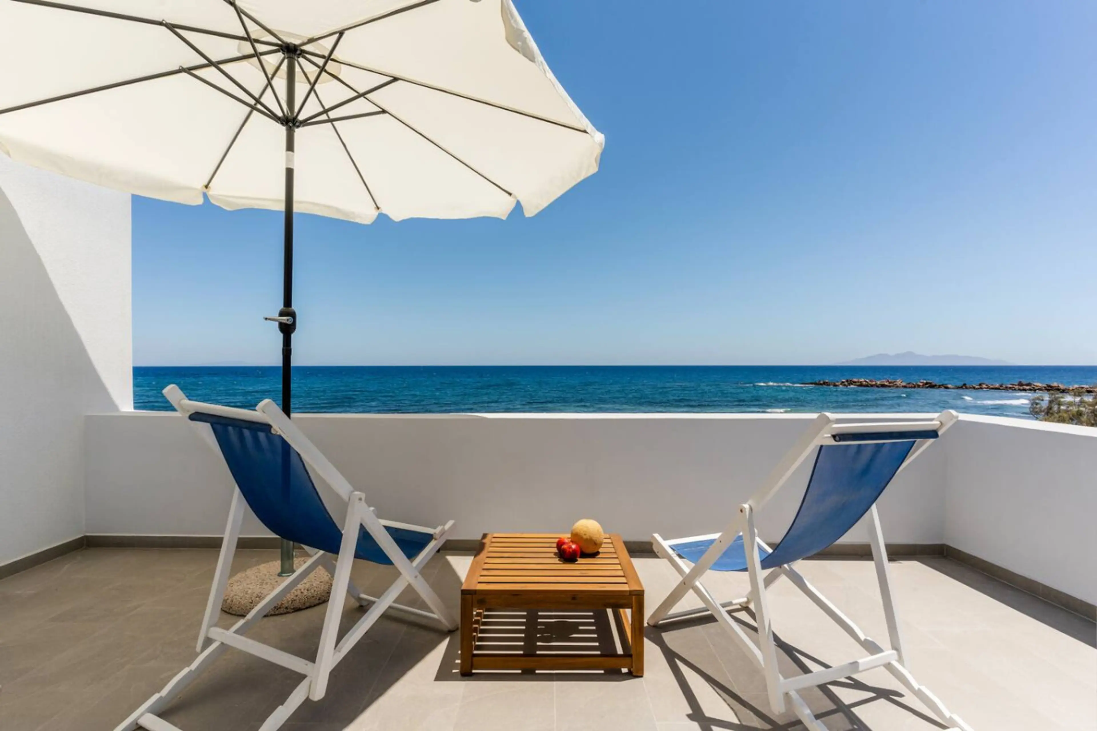 Welcome to Seaside Serenity House, a charming beachfront house in Monolithos, Santorini. This cozy retreat features a bedroom with an ensuite full bathroom, a double bed for two guests, and a living area with a couch bed for two more. Enjoy stunning sea views from every room, just steps away from th...